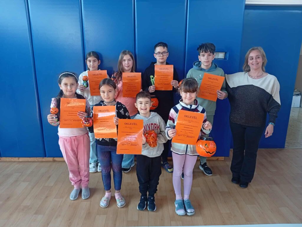 Az eredményhirdetésre november 4-én került sor. A díjazottak a következő tanulók lettek: az alsós kategóriában 3. helyezett lett Vörös Abigél Zselyke (4.o.), 2. helyezést ért el Németh-Fekete Flóra (1.o.), a győztes pedig Tóth Zoárd (1.o.) lett! Az alsósok között a különdíjas jutalmazott Horváth Nikol (2.o.) lett.